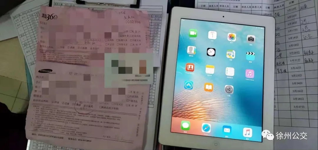 3月1日,1路1945號(hào)車(chē)駕駛員王昕菲回到車(chē)場(chǎng)后,發(fā)現(xiàn)后排座位旁有一個(gè)黑色的包,打開(kāi)后檢查,發(fā)現(xiàn)包里有iPad、身份證、票據(jù)等重要物品,王昕菲立即將包交給了車(chē)隊(duì)管理人員。沒(méi)多久,一位乘客急匆匆地來(lái)到1路調(diào)度室尋找失物,經(jīng)過(guò)仔細(xì)核對(duì),失主林先生拿回了自己的物品。