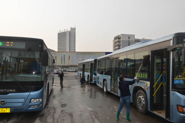 特別是雨后,所有管理人員、調度員、駕乘人員齊上陣,利用休停和晚收車后的時間,加班加點對2300多臺營運車輛和各公交首末站、停車場、調度室等環(huán)境衛(wèi)生進行了徹底的衛(wèi)生大掃除,清理衛(wèi)生死角。由機關職能部室和服務督導隊,以及各營運公司組成檢查組,每天都要在線路開展衛(wèi)生專項檢查。針對檢查中發(fā)現(xiàn)的問題限期整改,責任到人。徐州公交在每臺車的前擋風玻璃處放置了創(chuàng)衛(wèi)標語,在公交首末站懸掛創(chuàng)衛(wèi)標語37個,在700多臺公交車載電視中滾動播出創(chuàng)衛(wèi)宣傳片,制作了創(chuàng)衛(wèi)健康宣傳專版30多個,在每個調度室張貼了《中國公民健康素養(yǎng)66條》,在所有停車場、辦公區(qū)域、車廂內張貼了禁煙標識。